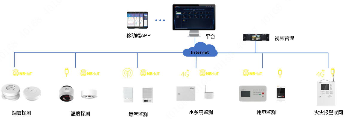 提供对传统消防设备监控盲区的补充覆盖,如电瓶车充电区、出租屋、厨房等场景。提供小场所消防无线互联式探测设备接入渠道。支持报警APP通知、电话推送等功能。